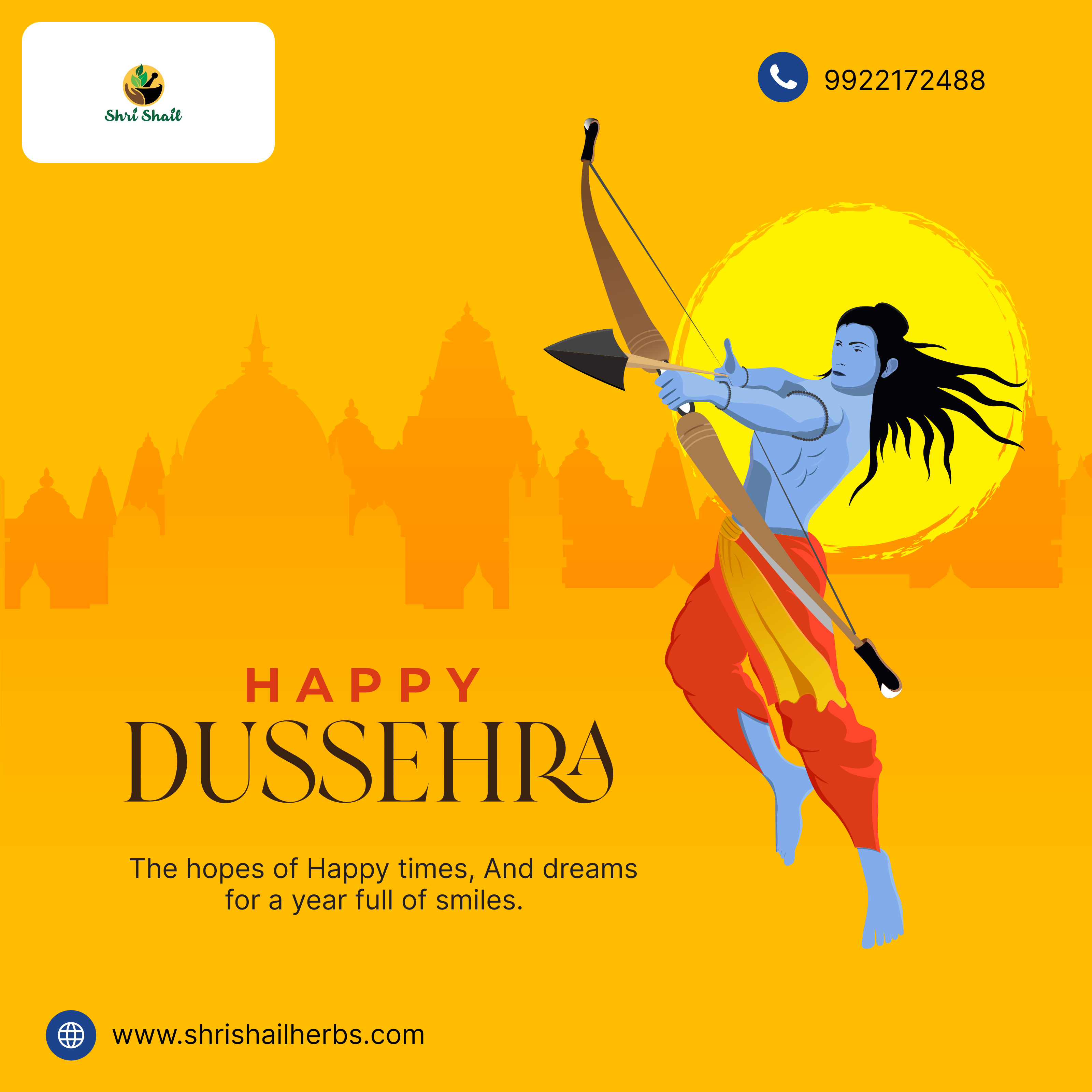 May the divine blessings of this auspicious day fill your life with happiness, peace, and success. Wishing you a joyous and prosperous Dussehra! 🪔🌟